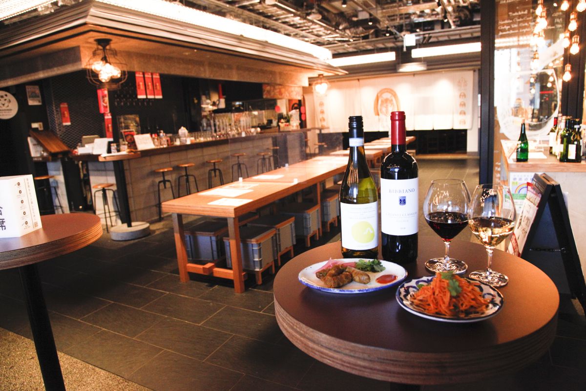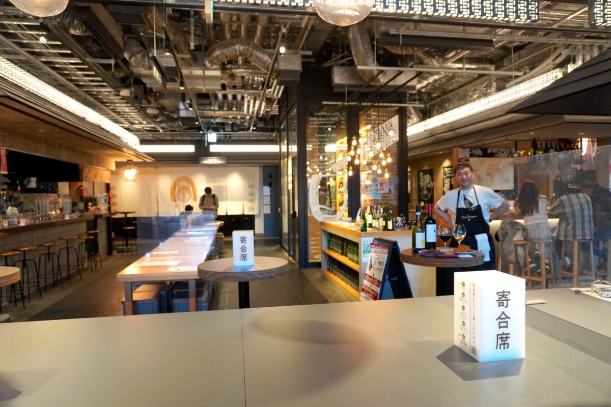 丸テーブルのスタンディング席もあれば、大勢で座れるテーブル席もあり、「HAND PICKING WINE」の料理だけでなく、「虎ノ門横丁」の各店の逸品をピックアップし持ち寄れる、「虎ノ門横丁」ならではの楽しみ方ができる席になっています。