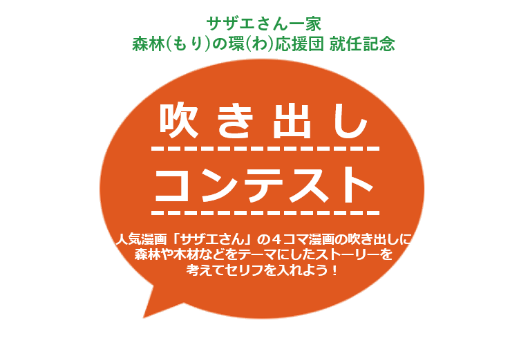林野庁は、長谷川町子美術館と連携し、長谷川町子氏原作の漫画『サザエさん』から選出した4コマ漫画の吹き出しコンテストを開催します。