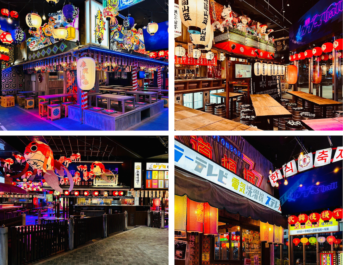 ホール内には大型LEDビジョン、DJブース、ミラーボール、カラオケなど最新の照明・音響が導入され、新旧の文化イベントや最新カルチャーイベントだけでなく、お祭り団体や、国内外のミュージシャン・DJ・マジシャン・ダンサー・アーティストなどのパフォーマンスも実施。横丁という昔懐かしいテーマのもと、エンターテインメントと食を同時に楽しめる場所になっています。