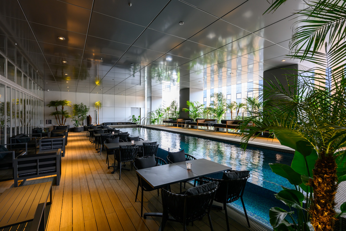 これまでのにぎやかな雰囲気から一変、5階には新しい大人の嗜みを体感できる「美と健康」をテーマにしたラグジュアリーなウェルネスエクラブが入ります。会員制ウェルネスゾーンと、ホスピタリティ高いレストランを併設した大人の空間です。