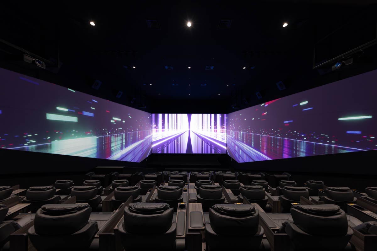 シアター6 には、正面スクリーンに加え、左右の壁面にも映像が投影される3 面ワイドビューシアター「ScreenX」を採用し、新作映画だけでなく、人気アーティストのライブ映像など多岐に渡るラインナップを楽しむことができます。