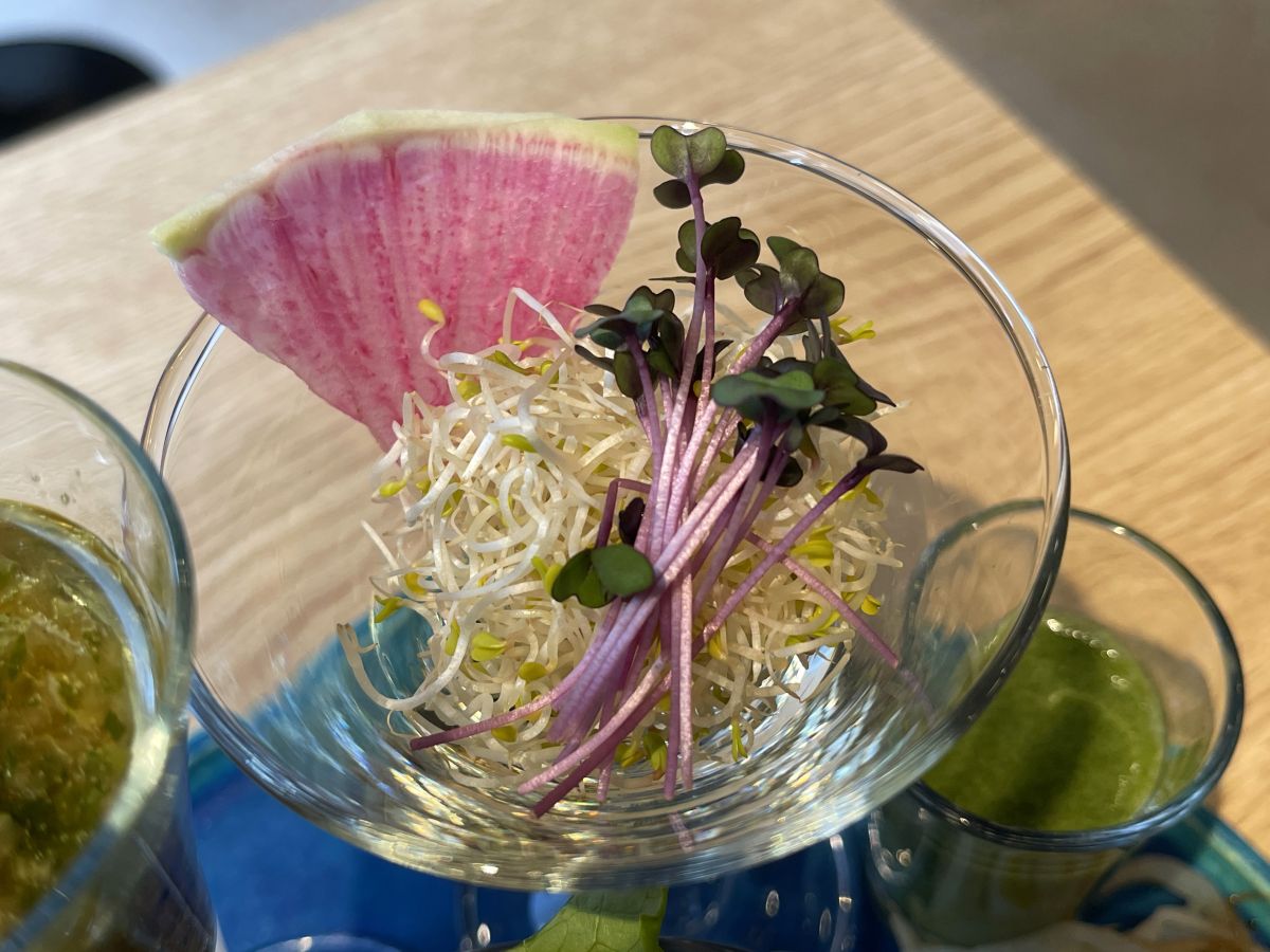 エイジングケアに効果のあるスプラウトも別添えで。スプラウトには、ビタミンC、β-カロテンなどが豊富に含まれており、「抗酸化野菜サラダ」や「自家製ドレッシング」と一緒に食べるのもおすすめです。