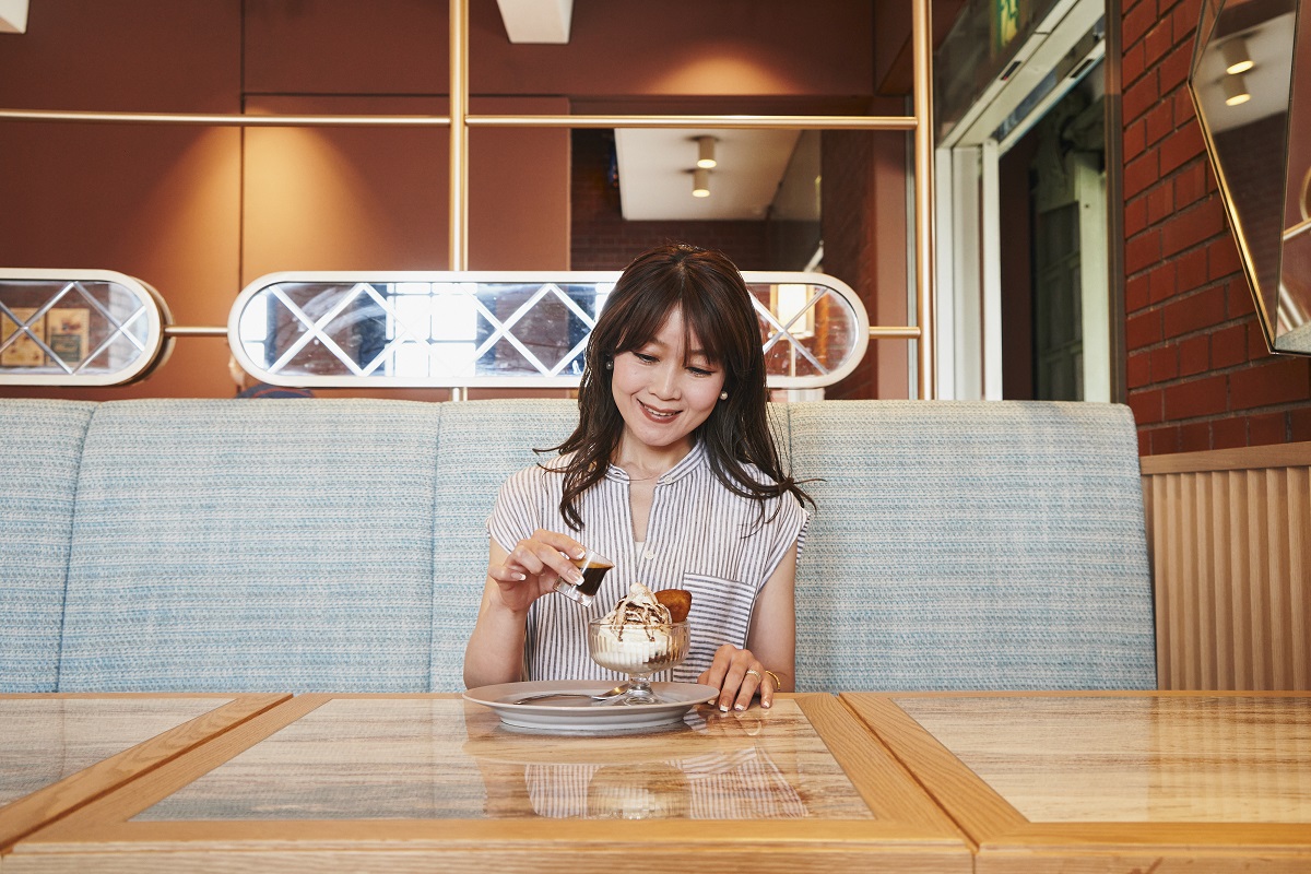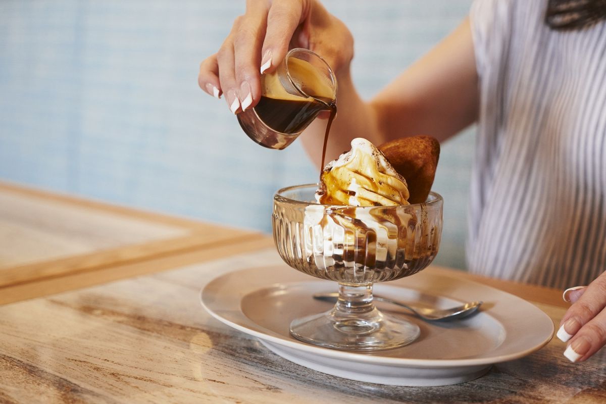 お店の一番人気は、横浜赤レンガ倉庫店限定の「ハーバーアフォガート」780円。横浜みやげの定番「ありあけ横濱ハーバー」をコーヒーにたっぷり浸してからオーブンで焼き上げ、ソフトクリームの上にオン。マロンのまったりとした風味が人気のありあけ横濱ハーバーとフルーティーな酸味のあるコーヒーの相性が抜群で、最後までさっぱりといただくことができました。