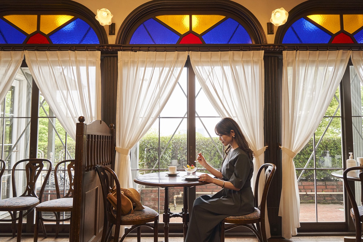 ステンドグラスの窓がレトロな洋館カフェ「山手十番館」