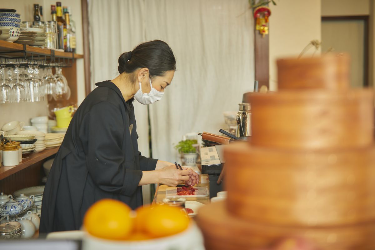 店主のめぐみさんは、岡崎の疏水べりにあった「& noma CAFE」で店長を、五条の高瀬川と鴨川の間にあった「エフィッシュ」で副店長を勤めた凄腕。その頃の仲間たちとお気に入りの調味料やハーブなどの情報交換をしながら、常にブラッシュアップを図ります。