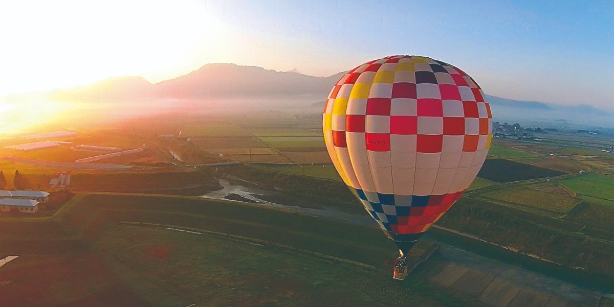 阿蘇といえば、雄大な山々やどこまでも広がる大草原。そんな阿蘇を地上40mの高さから360°見渡すという非日常感を味わえるのが熱気球体験!美しい自然に抱かれた阿蘇を、いつもと違った角度から楽しんでみましょう。