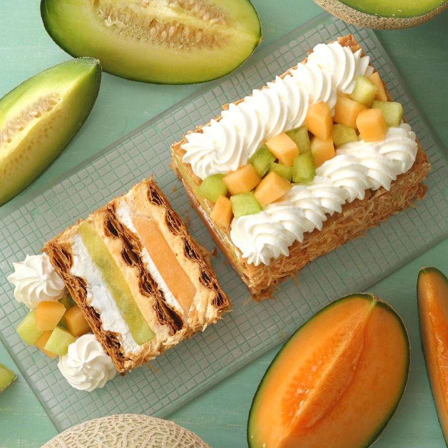 【KIHACHI 青山本店】2種類のメロンがサクサクのミルフィーユに!初夏限定「KIHACHI のダブルメロンパイ」とメロンのアフタヌーンティーがスタート