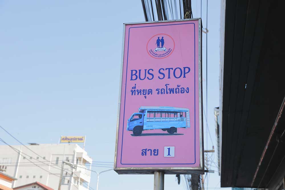ソンテウのイラストやアイコンが書いてある看板が停留所の目印です。ランドマークなどの建物の横や、道路沿いに周期的にこの看板が立っています。プーケット・タウン以外の停留所では、手を挙げて乗車するスタイル。プーケット・タウンからパトン・ビーチまでB35程度で、ほかの移動手段に比べて格安なのがメリットです。料金は距離に関係なく一律料金。乗車中にスタッフが料金を回収しているので、そのスタッフに支払いをしましょう。