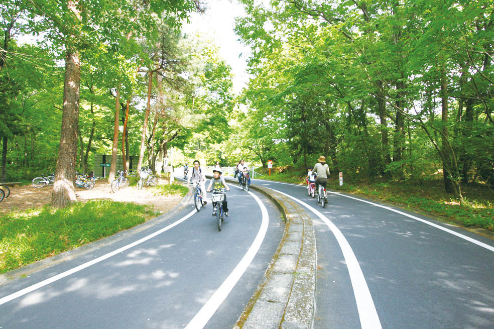 ※園内バス「植物園前」停留所から徒歩1分、サイクリングコース駐輪場「P8」から徒歩すぐ