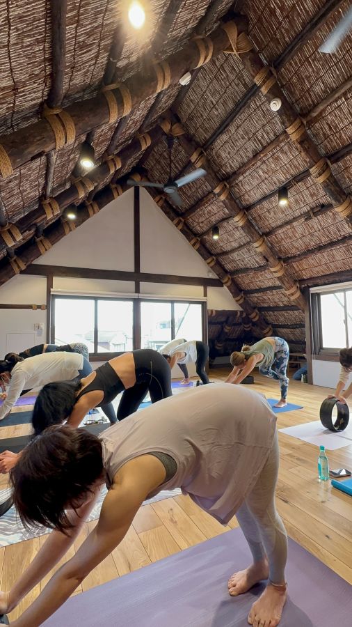 3階の気持ちよい風が抜ける合掌造りの三角屋根部分が、ヨガスタジオになっています。平日の午前中を中心に「SHONAN BEACH YOGA(湘南ビーチヨガ)」のインストラクターがレッスンを開催。朝ヨガをしてからの鎌倉散策もおすすめです。「WITH Kamakura」の公式サイトから要予約、1回2000円。