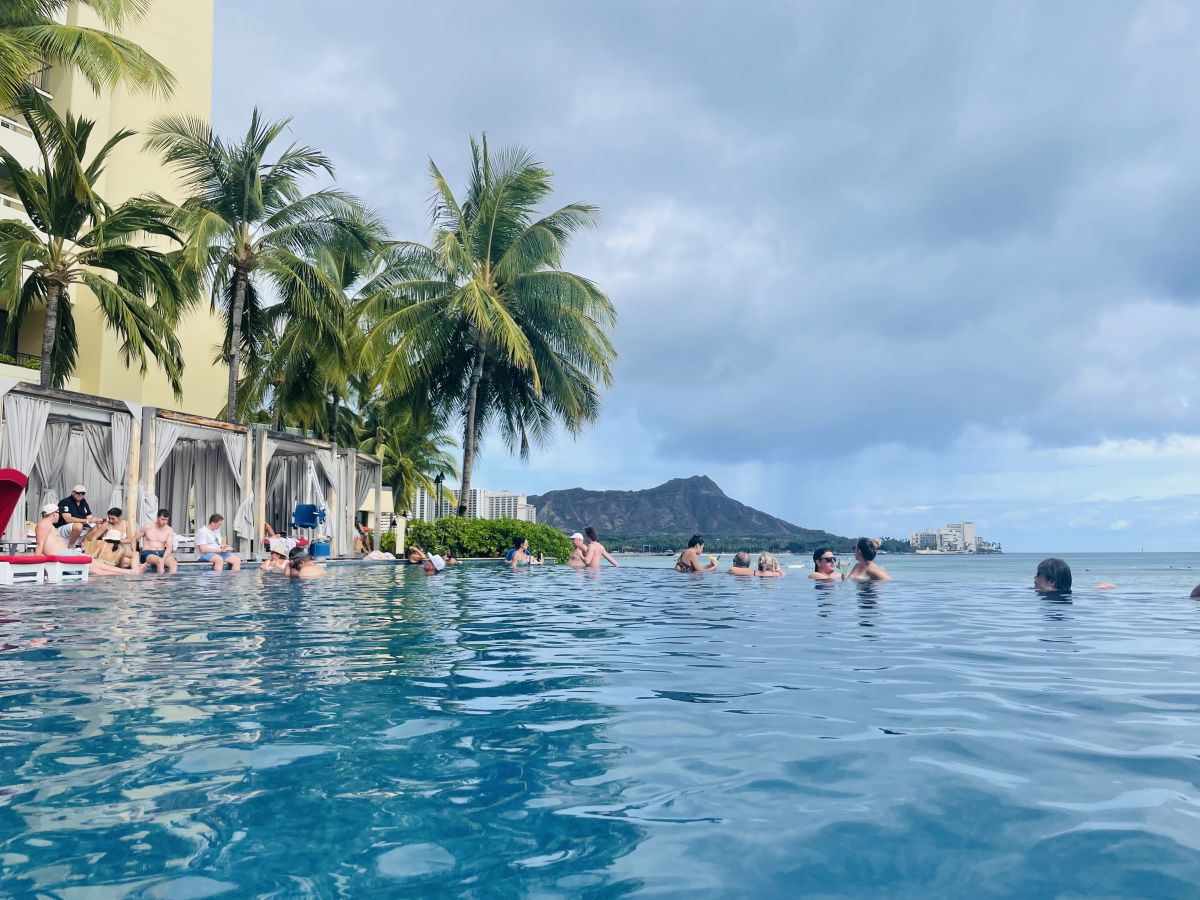 「シェラトン・ワイキキ」には、16歳以上の方が利用できる、「インフィニティプール」があります。名前のとおり、プールとワイキキの海の境界線がわからなくなるほど海に近いのが特徴。また、ダイアモンドヘッドもプールから一望できます。リゾートを代表するプールバー、「ザ・エッジ・オブ・ワイキキ」のドリンクは、プールの中からオーダーができ、プールでもドリンクを楽しめます。