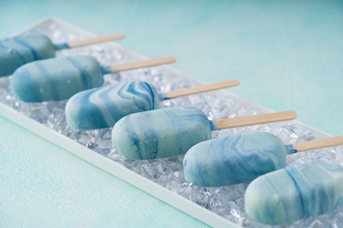 「バニラ小豆アイスキャンディー」は、波のようなマーブルカラーをまとった、溶けないアイスキャンディー。濃厚なバニラとしっとりとした小豆のバランスが絶妙です。