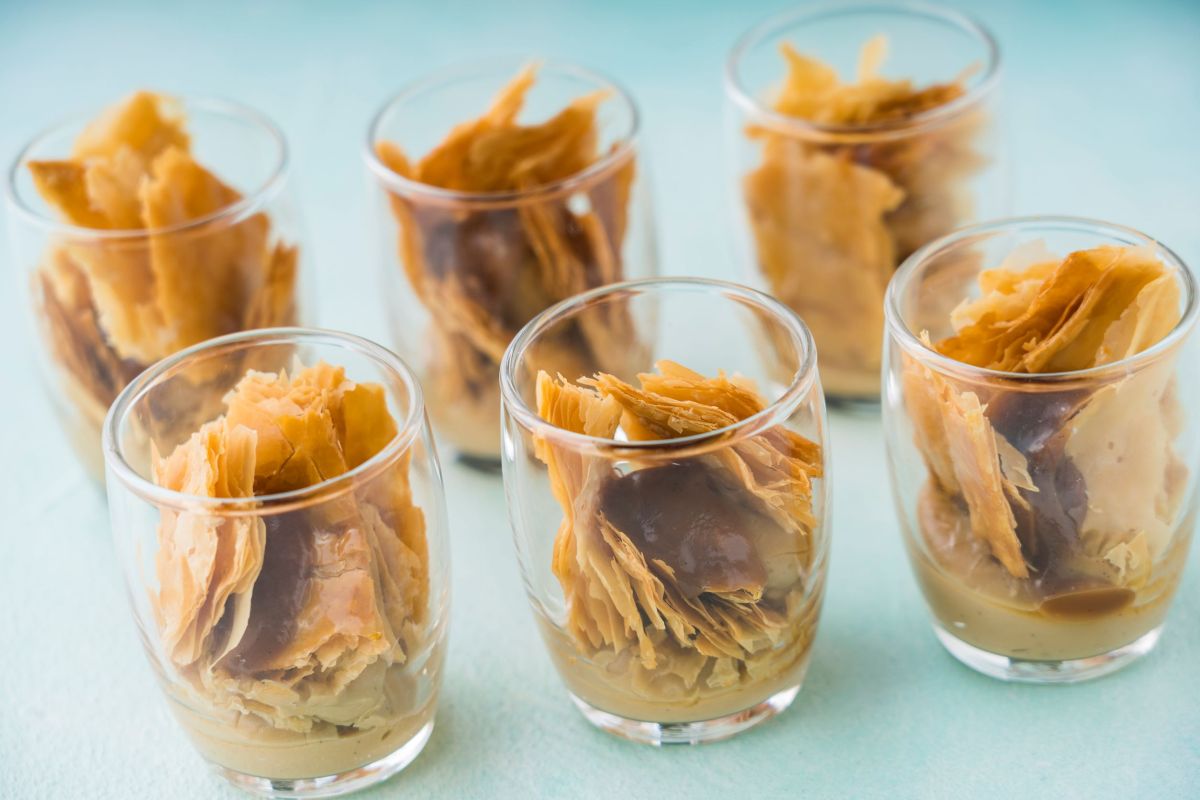 グラスに入った「コーヒーキャラメルミルフィーユ」は、カリカリっとした食感を楽しむグラスデザート。ほろ苦いクリーミーなコーヒーカスタードと塩キャラメルの相性が抜群のミルフィーユです。