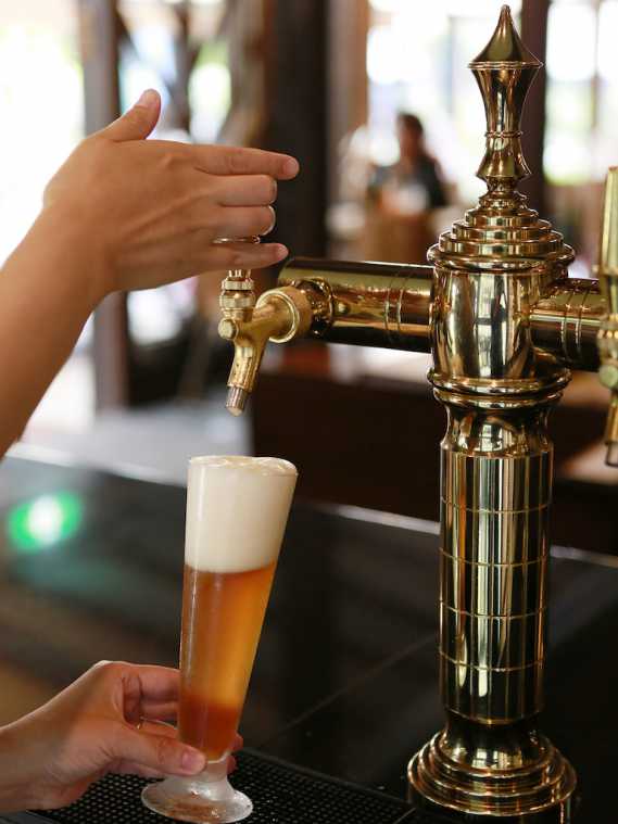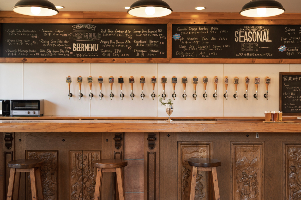 新鮮な空気を味わったあとは、吸い寄せられるようにビアタップへ。時期にもよりますが、約20種類のビールを味わうことができます。