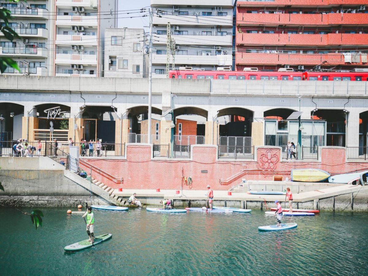 横浜・日ノ出町駅と黄金町駅をつなぐ京急電鉄高架下にある「Tinys Yokohama Hinodecho(たいにーず よこはま ひのでちょう)」は、カフェ&イベントスペース、宿泊施設、水上アクティビティ拠点から構成される、食べて、遊べて、泊まれる複合施設。