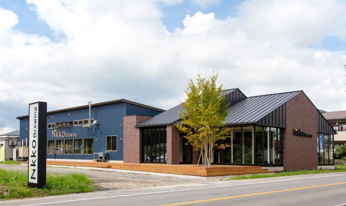 JR日光駅から2駅、下野大沢駅からバスで15分ほどの場所にあるスタイリッシュな外観が目を引く「Nikko Brewing(にっこー ぶるーいんぐ)」。