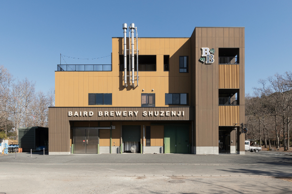 「ベアードブルワリーガーデン修善寺」は、沼津市で創業したクラフトビールメーカー「Baird Brewing(ベアードブルーイング)」の醸造所。建物内にはタップルーム、広い敷地内にはキャンプ場や農園などが隣接しています。車を走らせると見えてくるのが、のどかな風景のなかにひときわ大きな建物。
