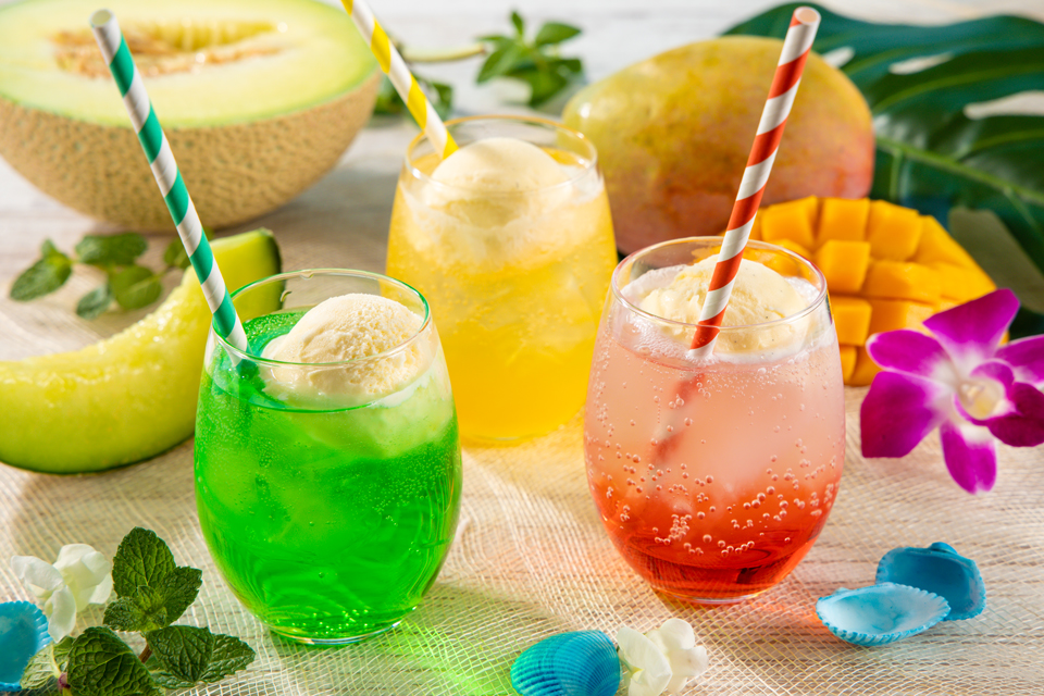 また、今回はスイーツやセイボリーとともに、選べるクリームソーダも登場。メロン、グァバ、マンゴーの3種類から1つ選ぶことができます。アイスクリームがのった鮮やかな1杯が、よりハワイ気分を盛り上げてくれます。