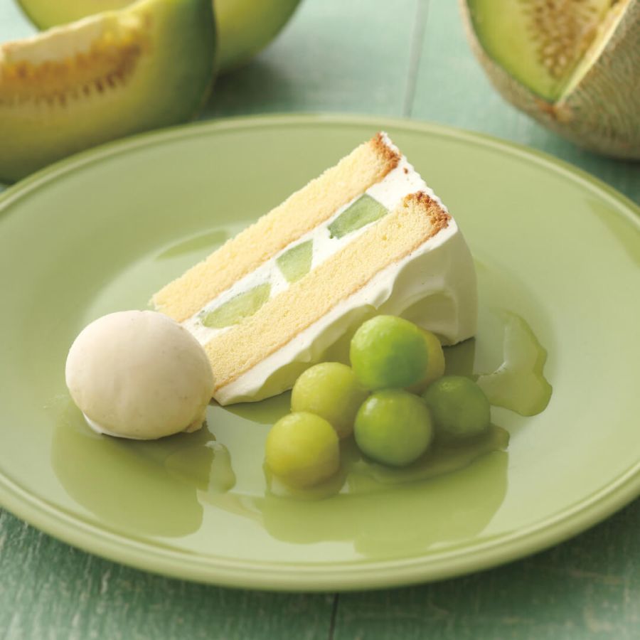 「メロンのショートケーキ バニラアイス添え」1430円は、旬を迎えたメロンを生クリームとスポンジでサンドした初夏のショートケーキ。バニラアイスも添えられています。フェア後半での提供メニューで2023年6月16日(金)~7月18日(火)の販売です。今から販売開始が楽しみ!