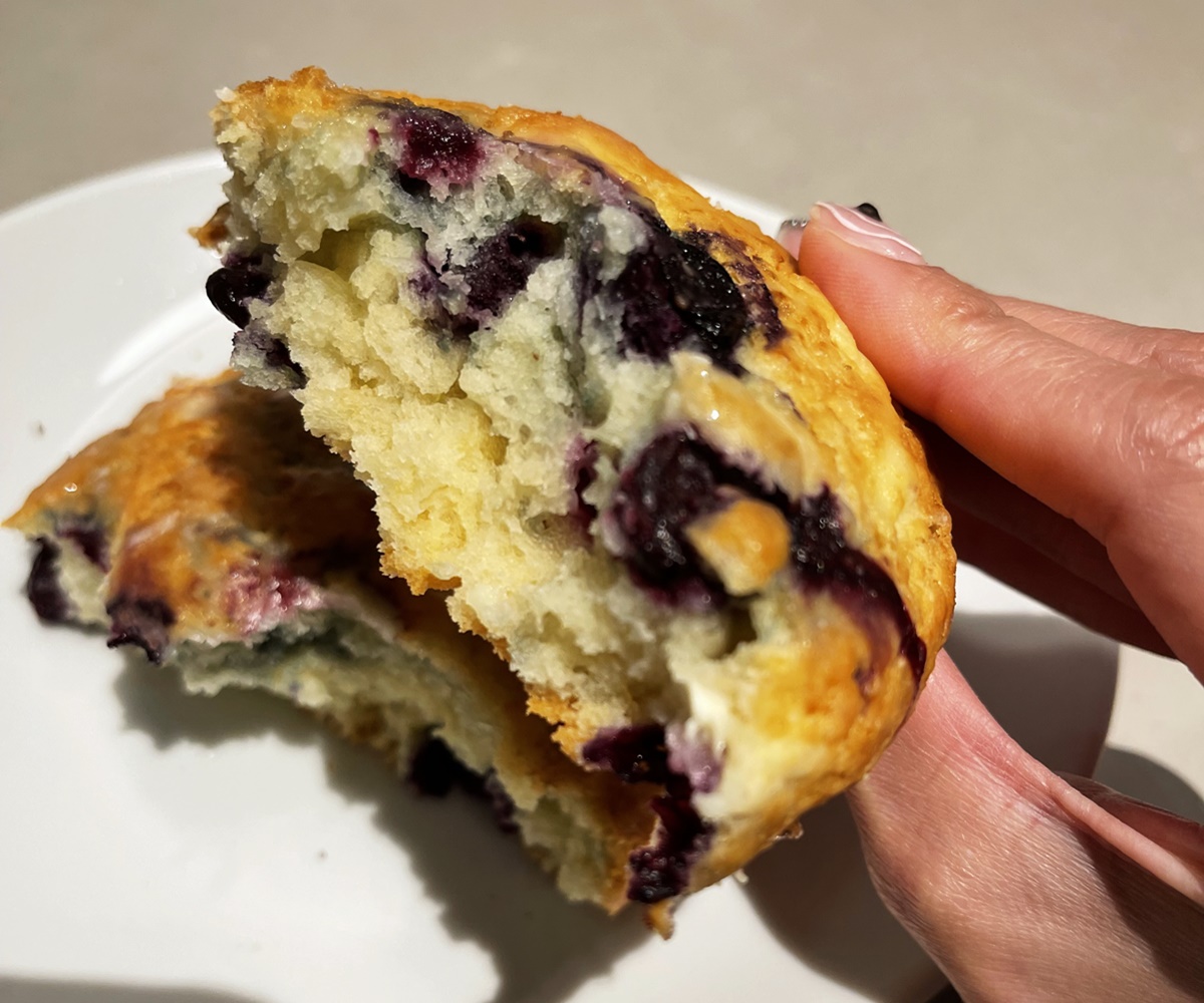 生地にバターとフルーツとクリームチーズをたっぷり混ぜ込んで、外はカリッっと、なかはしっとり焼きあげるのがナカジェネ流。