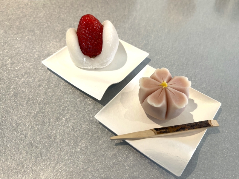抹茶と言えば、和菓子も見逃せません!今回は季節限定の「いちご大福」594円と、「桜練切」486円をいただきました。