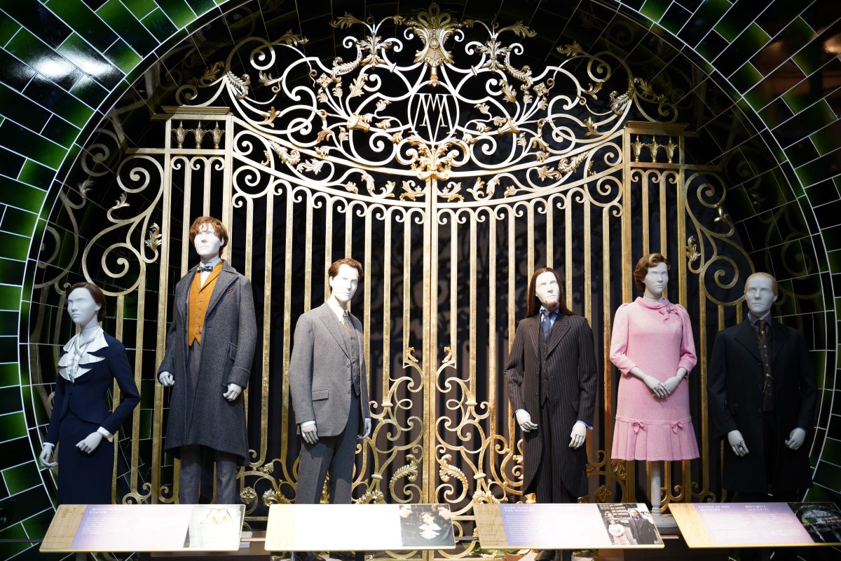 ドローレス・アンブリッジやコーバン・ヤックスリーといった魔法省を占領した人物や、『ファンタスティック・ビースト』シリーズのニュート・スキャマンダーなどの衣装が並ぶ後ろに位置するゲートは、なんと映画のなかで使用した実物を展示。
