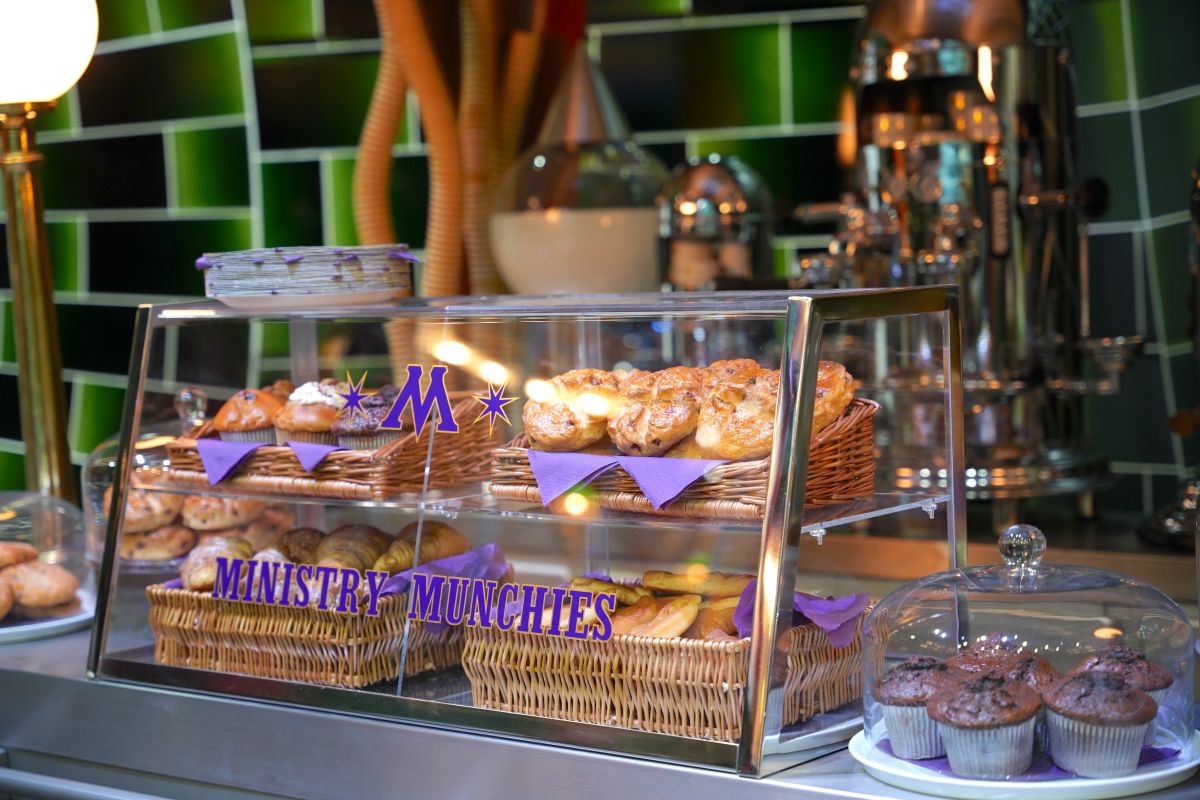 シリーズ第5作『ハリー・ポッターと不死鳥の騎士団』で、ハリーは魔法省でヴォルデモートとダンブルドアの激しい戦いを目の当たりします。その時、ハリーがとっさに身を隠したのがこの「アトリウムの売店」。撮影時は売店のセットに本物の軽食やスイーツが並びましたが、ダニエル・ラドクリフさんがついつまんでしまうため、まめに補充しなくてはならなかったそうです。