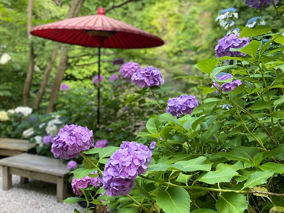 アジサイや竹林の景色を楽しみながら、緑を身近に感じてみてくださいね。