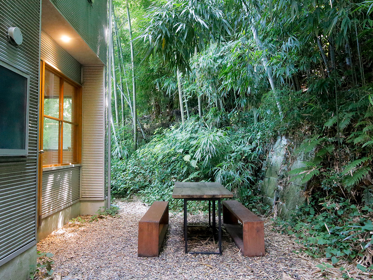 浄明寺の山奥にひっそりと佇み、「緑あふれる自然」×「モダンかつクール」を兼ね備えたお店の雰囲気です。外で感じる木々などの自然の香りが、普段は味わえない特別な食事にしてくれます。「食事や過ごし方を豊かにしていこう」と思わせてくれる場所です。