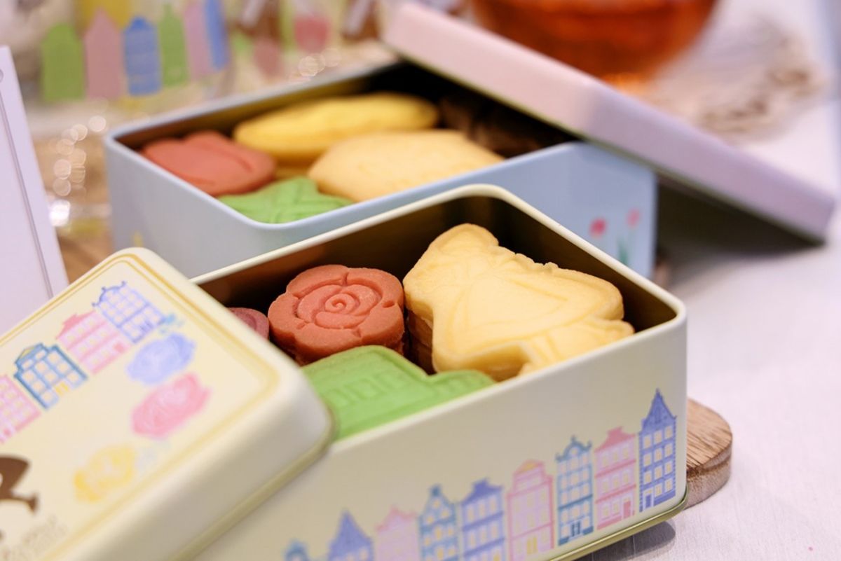 こちらはハウステンボスの街並みや建物、園内に咲く花をモチーフにした「クッキー缶」1800円。クッキーは職人がひとつひとつ型抜きするなど丁寧かつ繊細に作られ、さっくり軽い食感とふくよかなバターの香りが特徴。ストロベリーやピスタチオ、アールグレイなど異なるフレーバーの食べ比べも楽しく、かわいい容器は小物入れなどに利用できそうです。