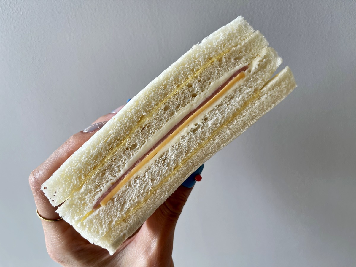 「洪瑞珍」のサンドイッチは、薄くスライスした食パンでハムやチーズなど、複数の具材をはさむのが特徴です。
