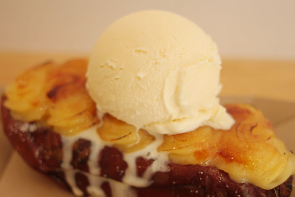 冷やした焼き芋にカスタードをのせた「お芋ブリュレ」