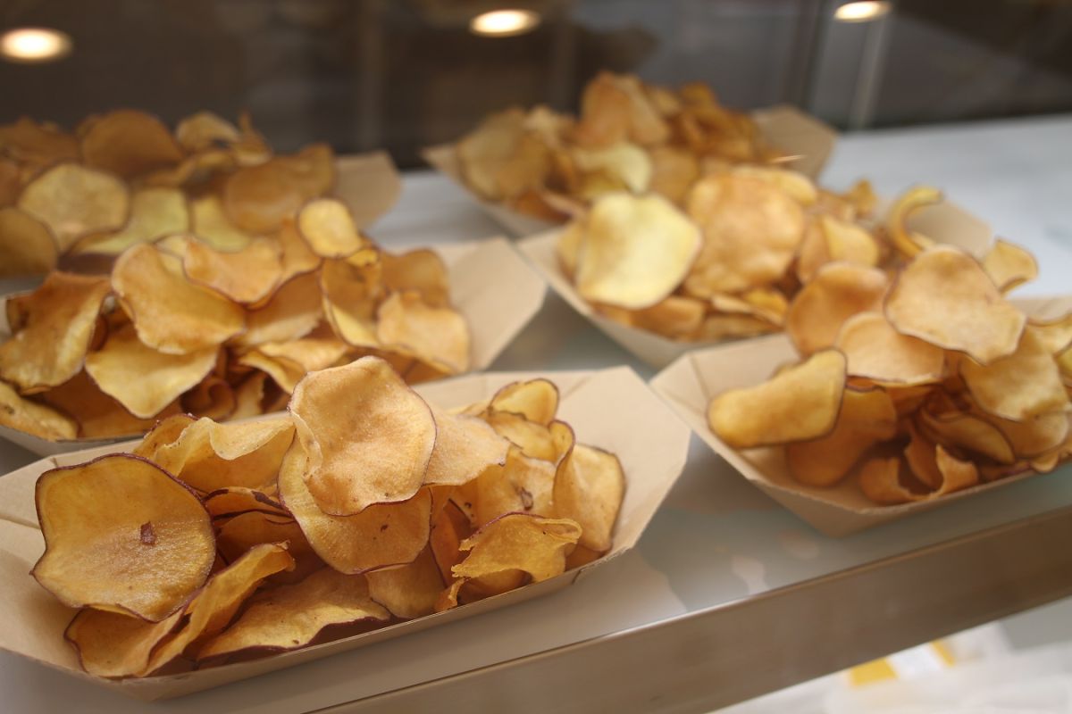 薄くスライスしたサツマイモを揚げた「お芋チップス」600円は、甘じょっぱいパウダーがまぶしてあり、一口食べたら止められなくなるおいしさ。シェアして食べやすいので、友人や家族と食べるのもよさそう。