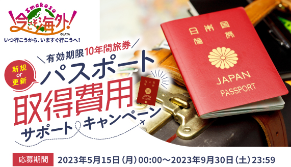 日本旅行業協会は、海外旅行を推奨するキャンペーン「JATA海外旅行促進プロジェクト」の第2弾「パスポート取得費用サポートキャンペーン」と「夏旅Wキャンペーン」を2023年5月15日(月)から開始しました。お得な内容が盛りだくさんなのでぜひチェックしてみて!