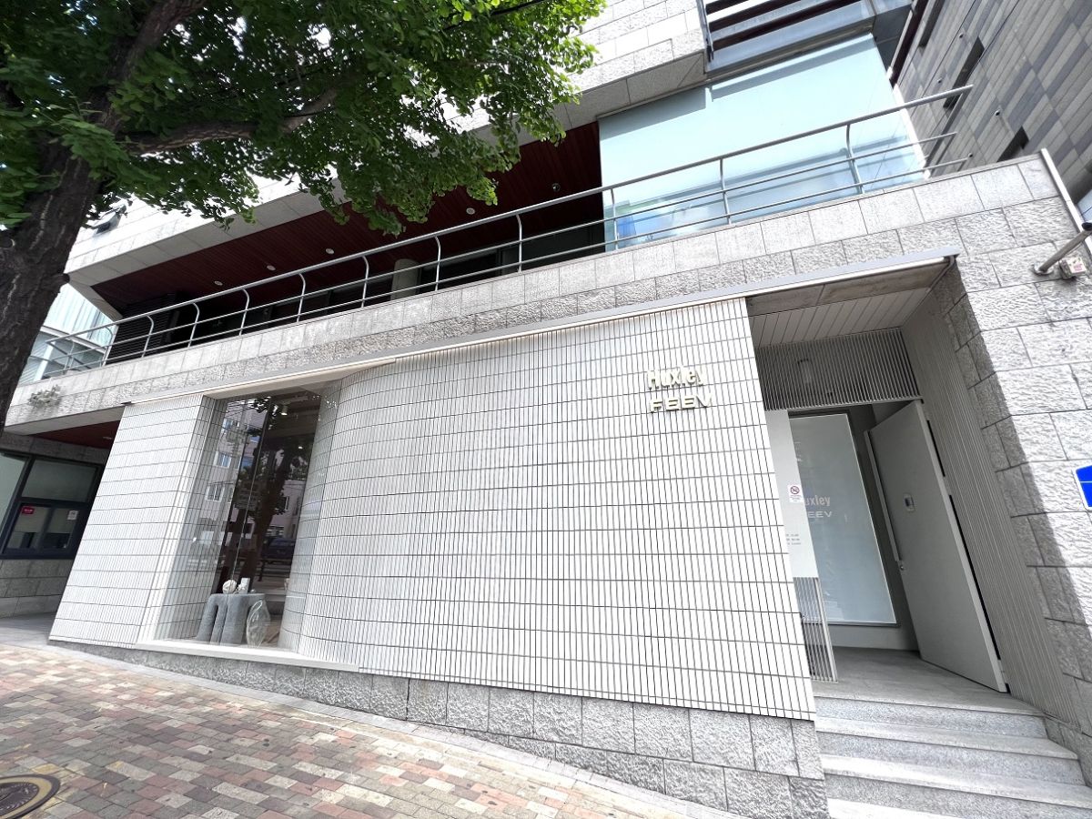 韓国の流行の発信基地弘大入口にあるショールームを訪ねてみました。地下鉄2号線弘大入口駅から徒歩10分ほどの場所にあるショールームの外観は、既存の韓国コスメのショップとは違い、シンプルで上品なスタイルと色使いで一見するとここがコスメショップなのかと思うほど。