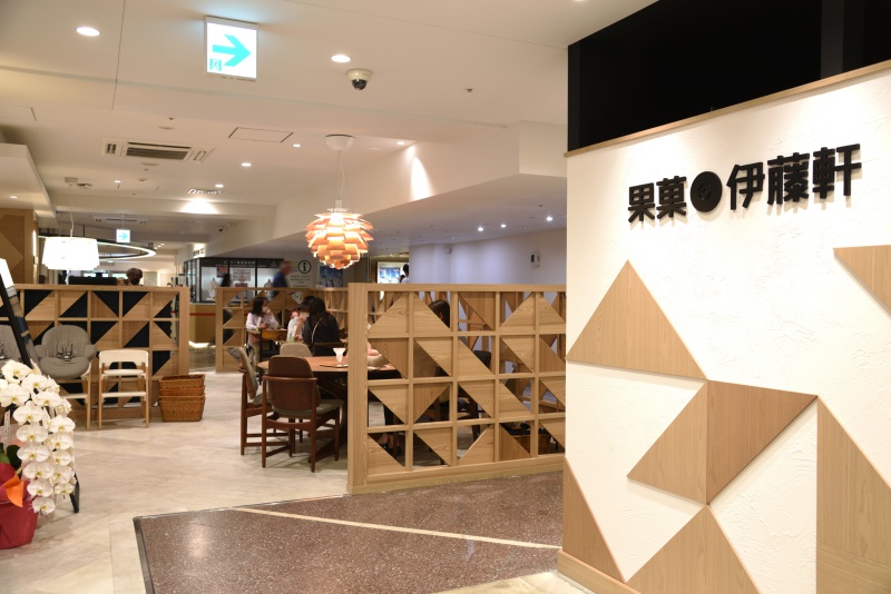 次はカフェです。1階の「果菓 伊藤軒」は、伏見区深草に本店を構える老舗の和菓子店「伊藤軒」が運営するカフェ。店内はゆったりとしていて、待ち合わせにも便利です。