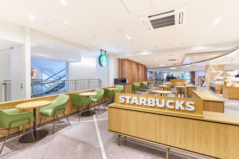 おなじみの「スターバックス」は新登場ではありませんが、京都駅前エリアで最大面積・席数を有する店舗にリニューアル! もともとこちらの店舗は全国でも上位の集客率だったそうです。京都駅近くということで、京都限定タンブラーなどの品揃えも抜群ですよ。
