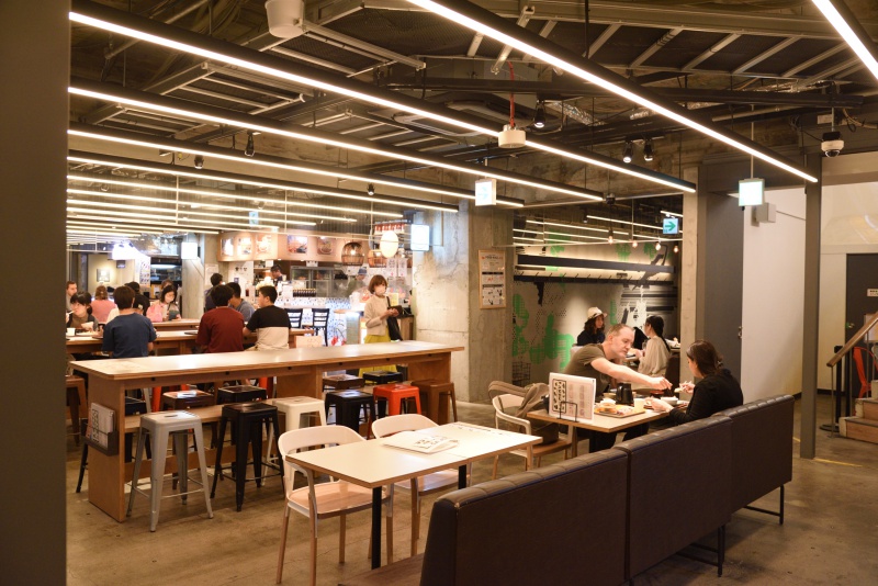 次はカジュアルな食事を自由に楽しめるフードホール! 地下1階の「KYOTO TOWER SANDO FOOD HALL」は座席数約450席と、ゆったりと広いのが特徴。さまざまな料理が一度に楽しめるのがうれしいですね。今回新登場した3店舗は、気軽なランチにぴったりです!