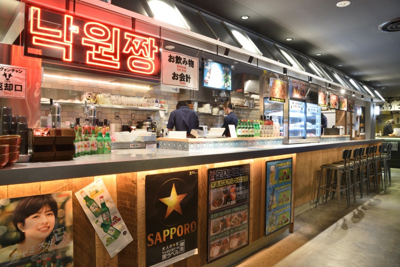 最後は本格的な韓国の屋台料理を味わえる「韓国料理 ナグォンチャン」。ナグォンチャンは韓国語で“楽園”という意味だそうです。看板のネオンライトが目を引き、本場韓国屋台の雰囲気が漂います。