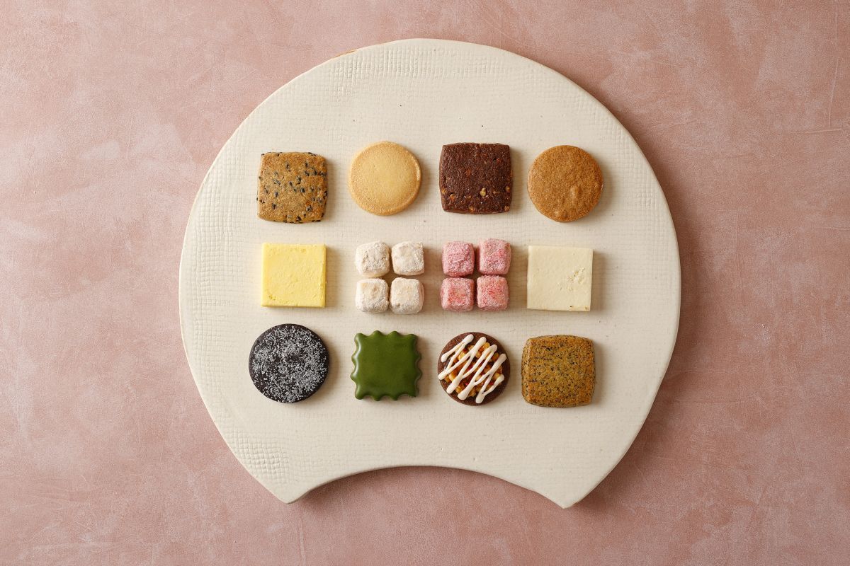 フレーバーは、上段左から「ごま」、「バター」、「ココア」、「きなこ」。中段の「焼きショコラレモン」、「和三盆」、「いちご」、「焼きショコラミルク」、下段の「山椒ココア」、「抹茶」、「キャラメル&ヘーゼルナッツ」、「紅茶」とさまざまな味わいのクッキーがずらり。こちらもハズレなしの組合せから攻めたものまで、いろいろな味が楽しめます!