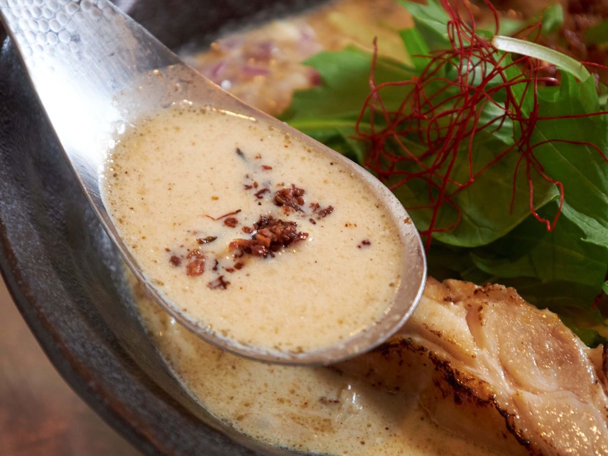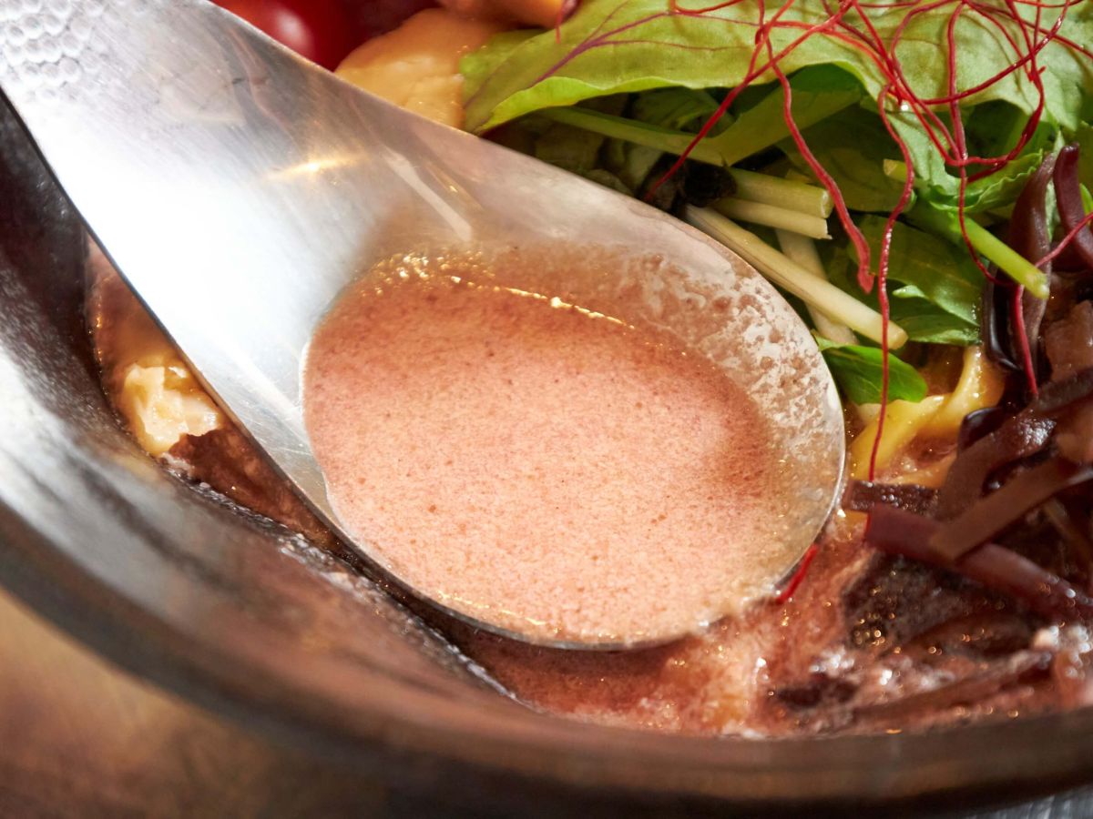 本店と原宿店の大きな違いは“スープ”です!“和風だし+とんこつ”をベースにしている本店に対して、原宿店は“和風だし+有機豆乳”で作られているのが特徴なんですよ。