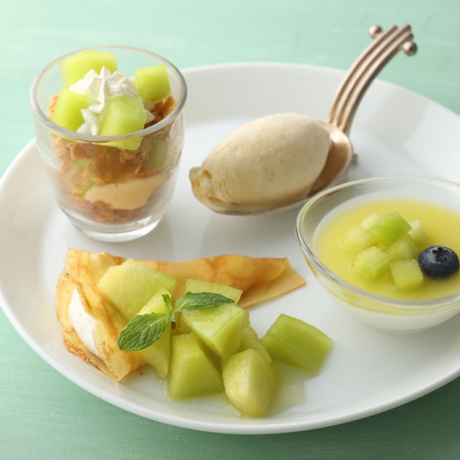 “Fresh & Juicy”をコンセプトに、高い糖度と華やかな香りを誇るプレミアムな千葉県産「千葉アクアメロン」をふんだんに使用したスイーツとセイボリーがご揃っています。