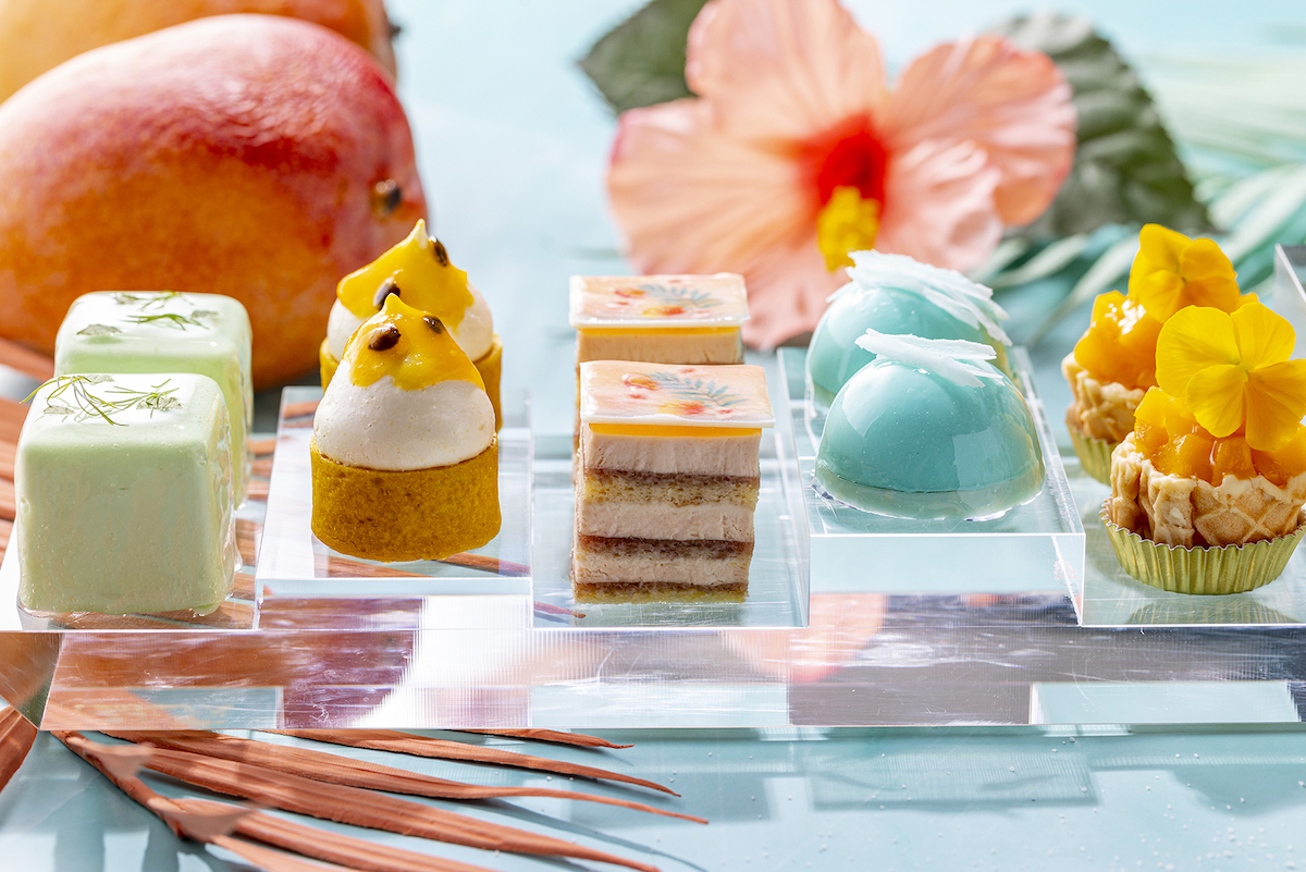 JR田町駅直結のライフスタイルホテル「プルマン東京田町」では、太陽のように輝く黄色いトロピカルスイーツのアフタヌーンティーが期間限定で登場。夏の日差しを浴びたマンゴーをたっぷりと使ったシュークリームやスコーンをはじめ、フランスの伝統菓子を”黄色ワイン”でオマージュした「発酵パインとヴァンジョーヌのサバラン」など、常夏をイメージしたエネルギッシュな黄色のスイーツが7種ラインナップされています。
