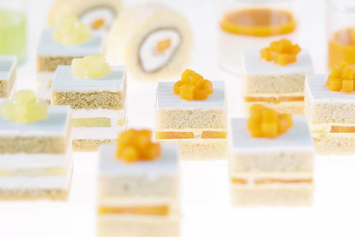 これから旬を迎える“マンゴーとメロン”をふんだんに使用したスイーツは、定番のショートケーキはもちろん、見た目もさわやかなグラススイーツやロールケーキなど、そのラインアップは全部で18種類。1つでも多く楽しめるよう、食べやすいミニサイズで用意されているのもうれしいポイントです。