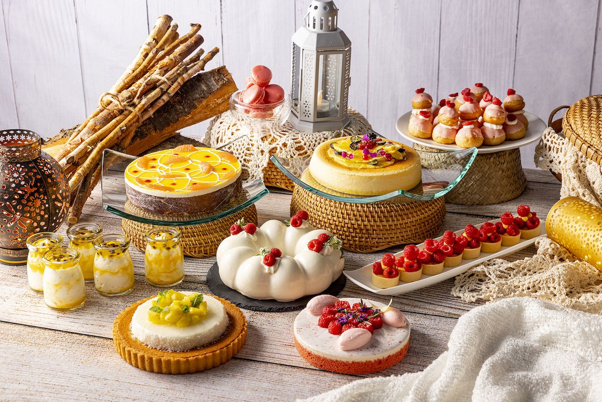 こちらのアフタヌーンティーでは、グランピング風デコレーションが施されたスイーツルームに用意された夏のスイーツも食べ放題!ピンクグレープフルーツやマンゴーを用いたケーキやグラススイーツなど、エグゼクティブ・ペストリーシェフが手掛ける10種類ものスイーツが好きなだけ楽しめるんです。