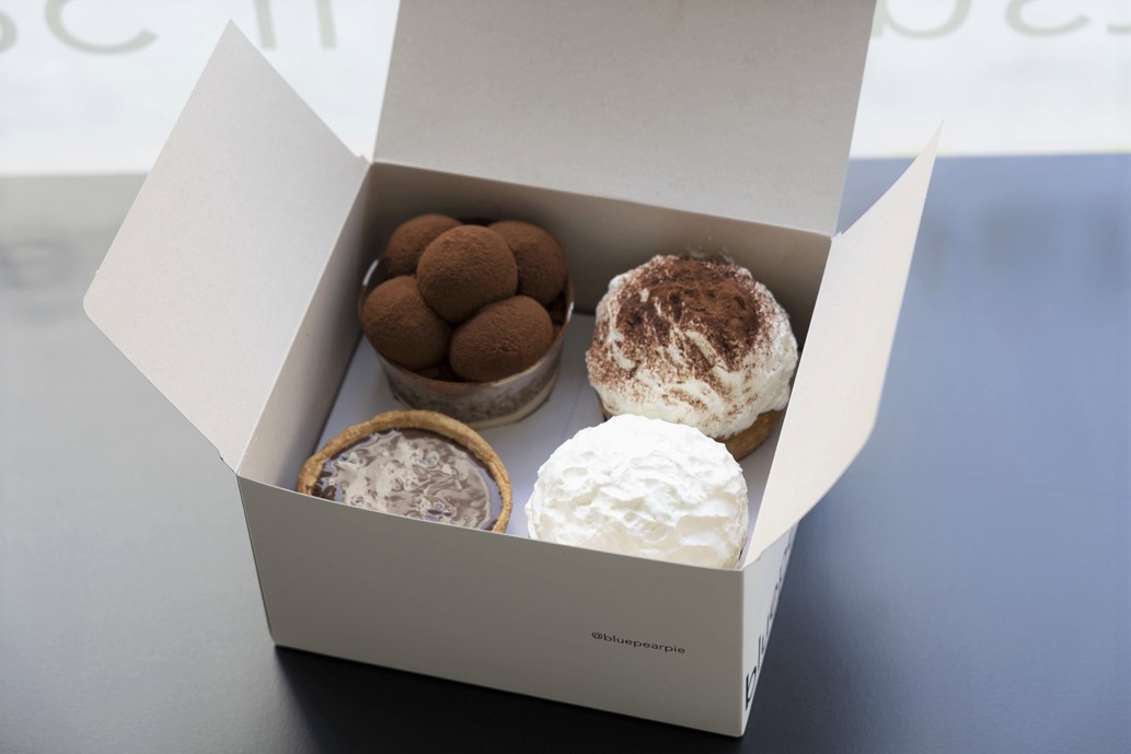 「bluepearpie」のパイは約7cm四方と大きく、食べ応えのある生地でクリームもたっぷり。1つでもお腹がいっぱいになるほどボリューミーなので、食べられなかった分はテイクアウトしてコンプリートするのもいいですね。