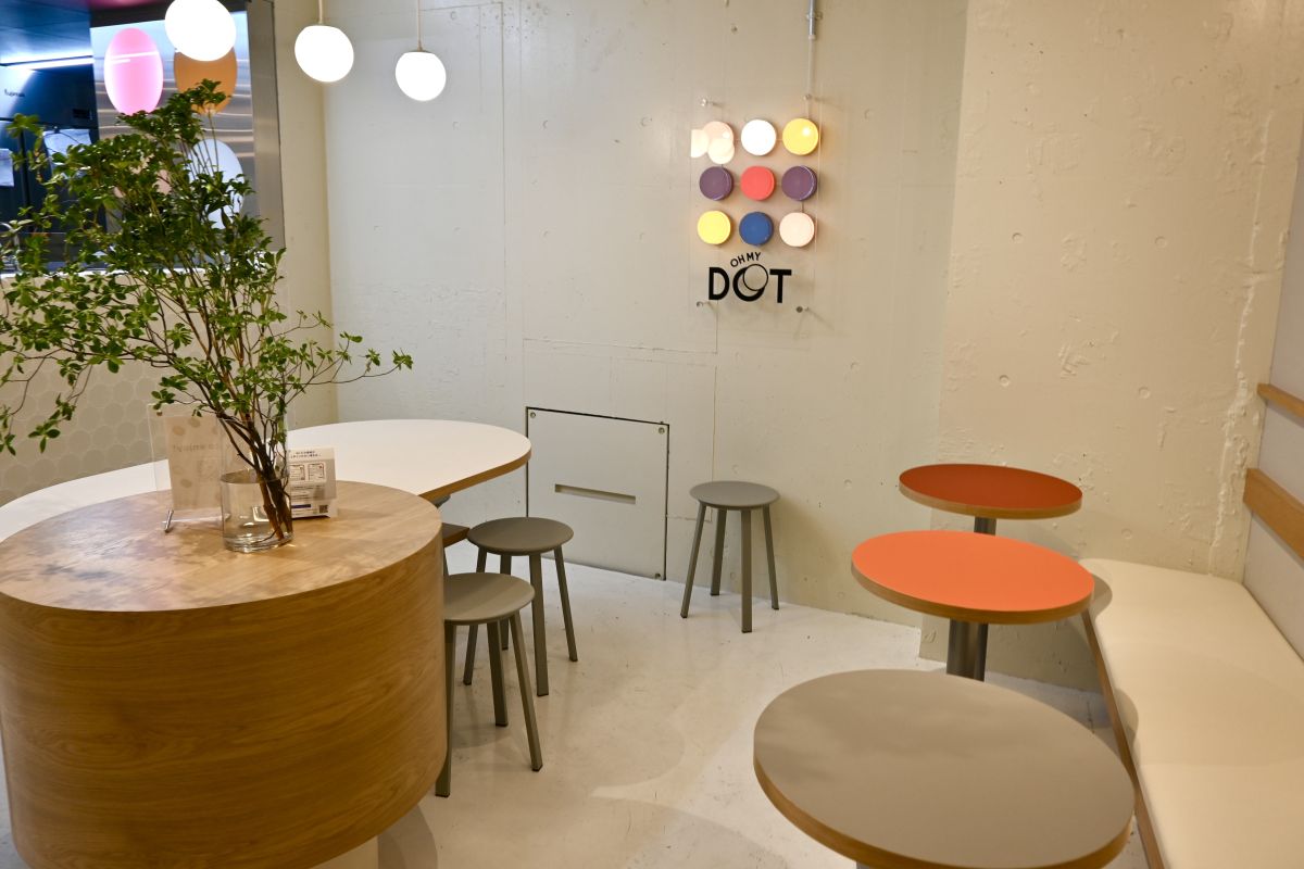 「oh my DOT シブヤ」はJR渋谷駅ハチ公口から約7分、スペイン坂にオープンしました。店名にちなんで、内観はドットをモチーフに取り入れたポップな雰囲気。
