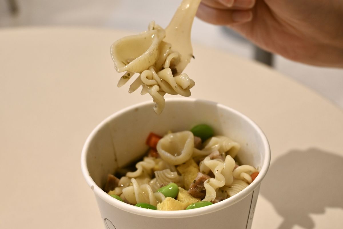 ショートパスタはらせん状の「フジッリ」と貝のような形をした「コンキリエ」が混ざっていて、食感の違いを楽しむことができます。