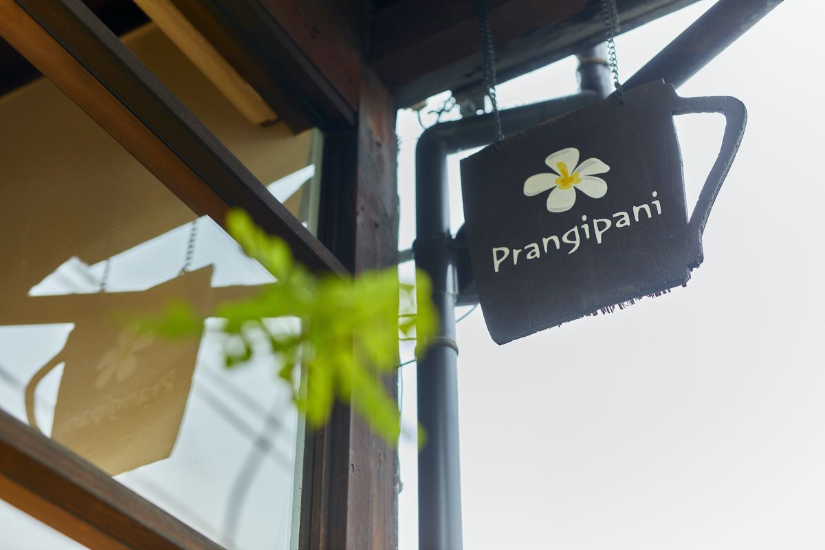 店名の由来は、バリ島に咲くプルメリアの花。プルメリアの別称frangipaniから付けられています。店主いわく深い意味はないとのことですが、店内は、プルメリアの花が咲く南国のような、おおらかな空気が流れます。