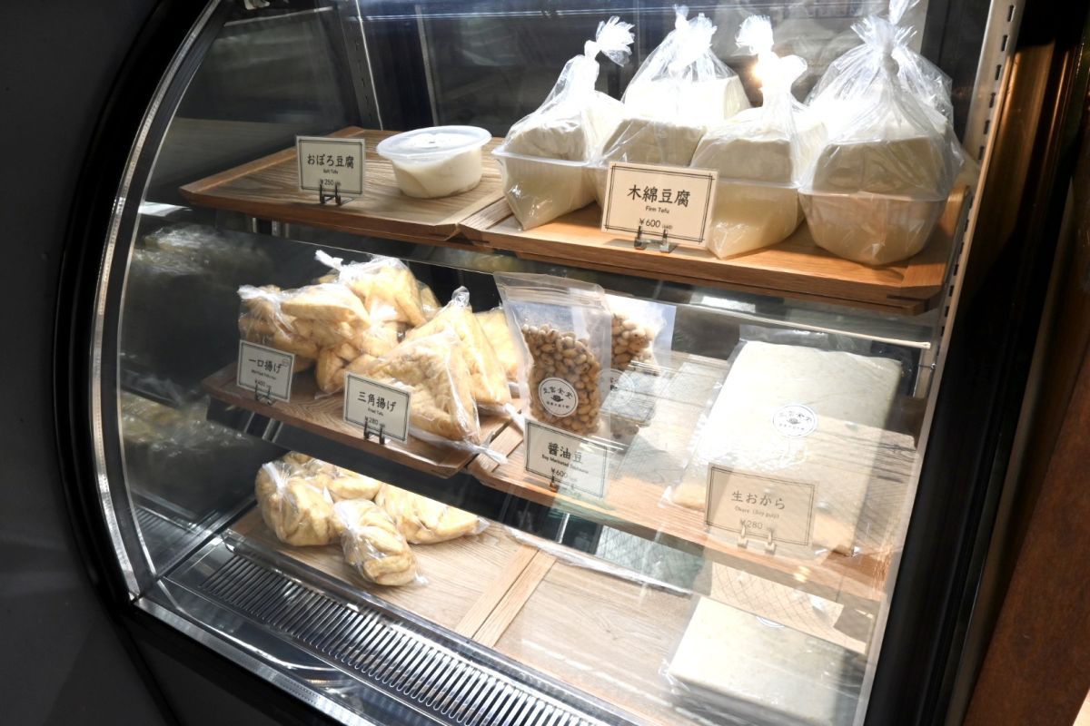 お店では、豆富食堂の商品も販売。宮城県産の大豆「ミヤギシロメ」を使用し、コクのある甘みが特徴の「おぼろ豆腐」250円、「木綿豆腐」600円のほか、「醤油豆」600円、「三角揚げ」280円なども購入することができます。